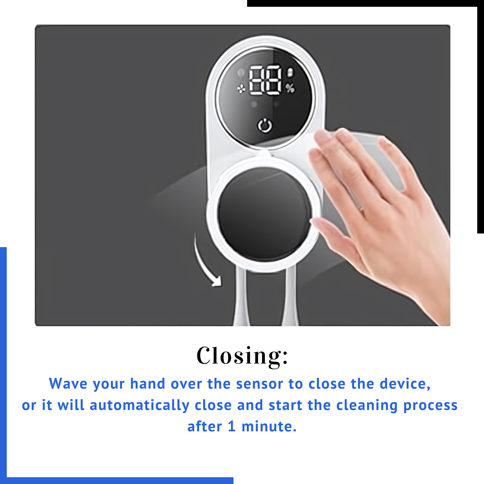 - Infrared sensor: Automatically detects when a toothbrush is inserted.