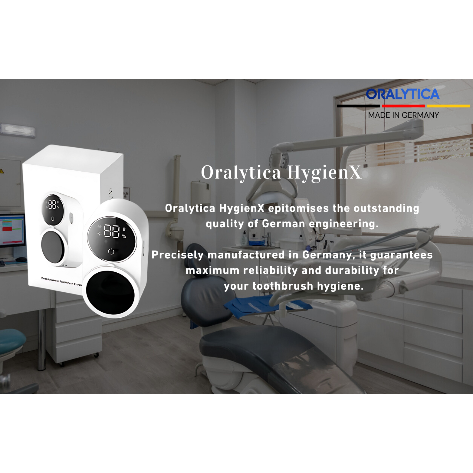 Experience simple and effective toothbrush hygiene with Oralytica HygienX.